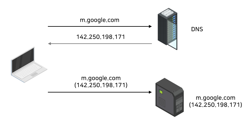 - SLD에서는 m.google.com을 담당하는 sub DNS server에 질의하여 해당 도메인에 대한 IP 주소를 획득합니다.